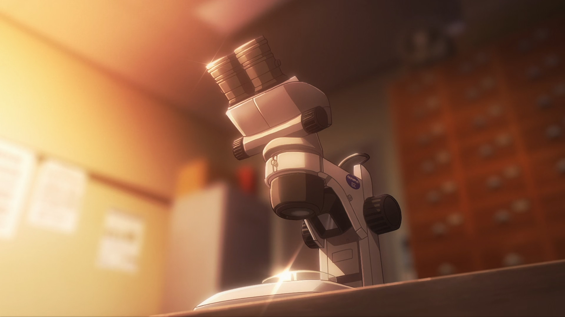 One thing I noticed throughout the entire show is the presence of microscopes made by Olympus, which is a real-life brand. After looking deeper into it, I found that the exact model seen on screen seems to be the SZX7. You'll find a picture of the real Olympus SZX7 as well as more images of it from the anime below (mild spoilers are included).
